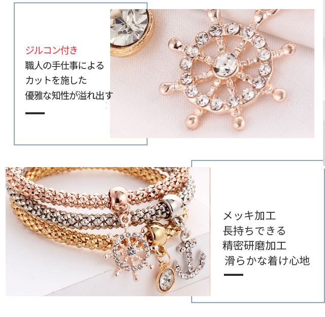 【ゴム紐ブレスレット3点セット】 キラキラ輝く/華奢で上品